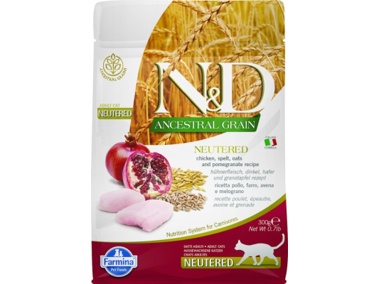 N&D Ancestral Grain est une ligne à base de céréales ancestrales (épeautre et avoine), conçue scientifiquement pour satisfaire les besoins nutritionnels des chats et des chiens.