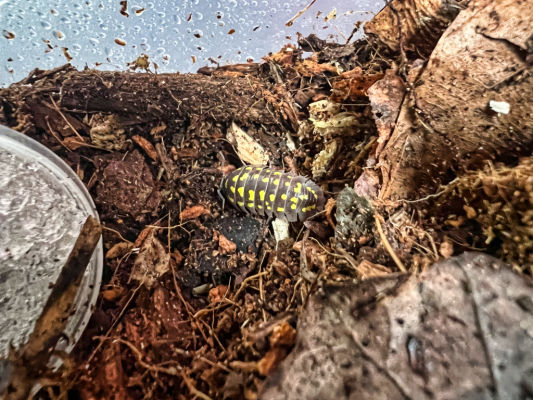 Cet aspe est plutôt destiné à l'ornement. Ils n'aiment ni trop d'humidité ni trop de sécheresse.Les cloportes ornementaux mangent des queues sautées et de la nourriture pour cloportes, des bâtonnets Achatina et divers feuillages.