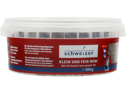 Une récompense idéale pour chaque gourmand ! Sans gluten ! Délicatesse petite, fine et sans céréales, mais avec beaucoup de viande fraîche de poulet Suisse !