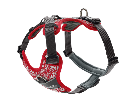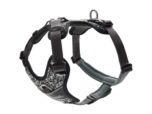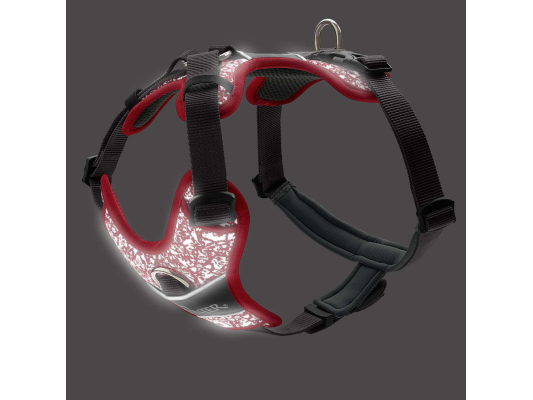 Le harnais DIVO REFLECT offre non seulement un ajustement ergonomique mais également un plus en terme de sécurité grâce à la visibilité. L'imprimé intégral très visible de style camouflage est hautement réfléchissant et complète de manière optimale l'effet du matériau réfléchissant 3M™ Scotchlite™ environnant. La série DIVO est synonyme de confort à 100 %, car le rembourrage respirant en maille douce flatte la peau et le pelage de votre compagnon à quatre pattes. Une particularité de ce harnais en Y confortable est le deuxième anneau en D, qui permet de l'attacher au niveau de la poitrine. C'est au propriétaire du chien de décider si la laisse doit être attachée à un ou - pour un contrôle maximum - aux deux points fixes. Grâce au réglage en 5 directions, le harnais DIVO REFLECT peut être adapté individuellement aux besoins et à la morphologie du compagnon à quatre pattes et, lorsqu'il est utilisé correctement, s'adapte comme une seconde peau. Les couleurs riches et vives et l'imprimé camouflage argenté s'harmonisent particulièrement bien avec le pelage du chien et attirent rapidement les regards curieux. DIVO REFLECT se démarque tout simplement - à la lumière du jour et dans l'obscurité !