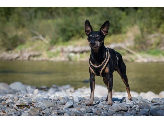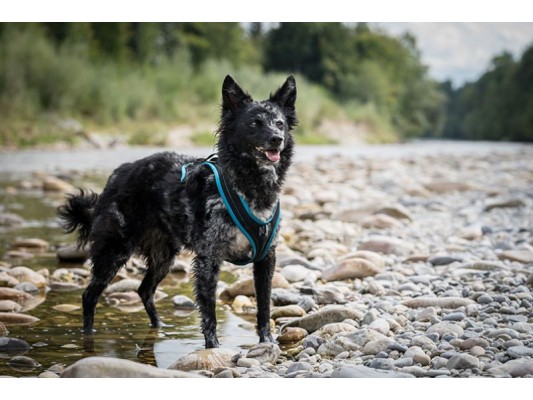 Les sangles du harnais de voyage sont cousues très solidement et les attaches en métal léger, qui ne peuvent pas être ouvertes sous tension, assurent la sécurité du chien. Les fermetures résistent à une force de déchirure de 300 kg par fermeture.