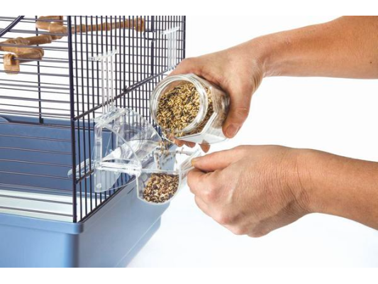 avec grille pour une fermeture de l'ouverture de la cage pour enlever la mangeoire, le nettoyage est ainsi facilité