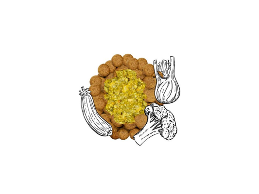 Le Topping Green est à base de courgettes, d’épinards, de brocolis et de fenouil. Cette combinaison de légumes verts est complétée par de précieux nutriments apportés par l’huile de tournesol, les fibres de pomme, la spiruline et l’ortie.