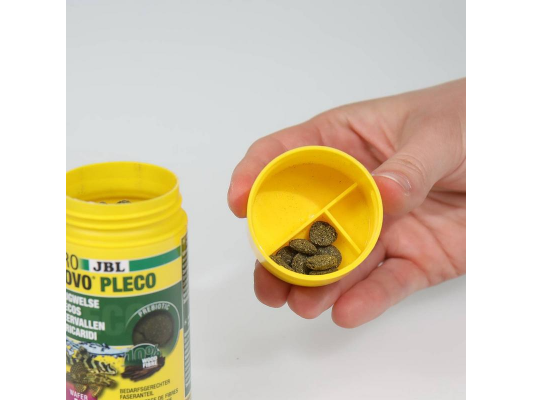 Certaines espèces (de nombreux Locaridés) ne se montrent pas lorsque la lumière est encore allumée. Les comprimés alimentaires donnés à ce moment-là vont se désagréger et seront plutôt mangés par les autres poissons, s'ils aiment la « nourriture verte ». Il est souhaitable de leur donner le JBL PRONOVO PLECO seulement APRÈS l’extinction de la lumière. Les « wafers » (pastilles plus fines que les comprimés) ne fondent pas aussi vite et pendant la période d’activité des Locaridés, ils conservent une consistance telle que les poissons doivent les râper énergiquement (ce n’est pas une blague – c’est important pour les dents !)