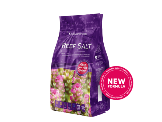 La composition en micro- et macro-éléments, perfectionnée au fil des années, offre des conditions optimales à la vie sous-marine. Elle convient parfaitement aux aquariums exigeants, notamment ceux peuplés de coraux SPS, ainsi qu'à l'élevage de coraux mous (LPS), moins exigeants. Le sel Reef Salt bénéficie désormais d'une composition encore meilleure et d'une formule améliorée. Enrichi d'ingrédients uniques, il favorise la santé et la croissance des coraux. Il contient des acides aminés essentiels à la croissance des coraux et des polypes. L'ajout de vitamine C, quant à lui, contribue à renforcer l'immunité et à améliorer l'état général de tous les habitants de l'aquarium. L'atout indéniable du sel Reef Salt d'Aquaforest réside dans sa solubilité, qui simplifie et accélère considérablement la préparation de l'eau de mer. En quelques minutes seulement, la saumure préparée avec le sel Reef Salt est prête à l'emploi dans l'aquarium.